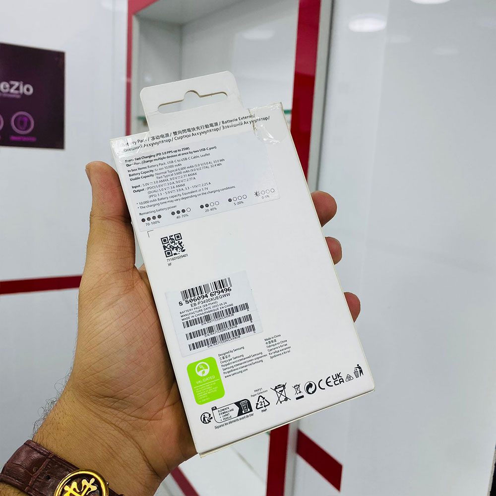 – Original Samsung portable power bank with 10000mAh battery capacity